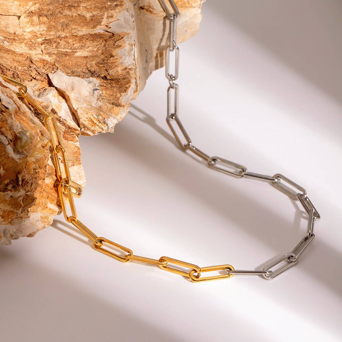 Two Tone Duo Tone Real Gold Dipped Link Chain Necklace, Designs meticulously crafted from high-quality stainless steel with a radiant 18K gold finish. Their tarnish-free, hypoallergenic, and fade-resistant.