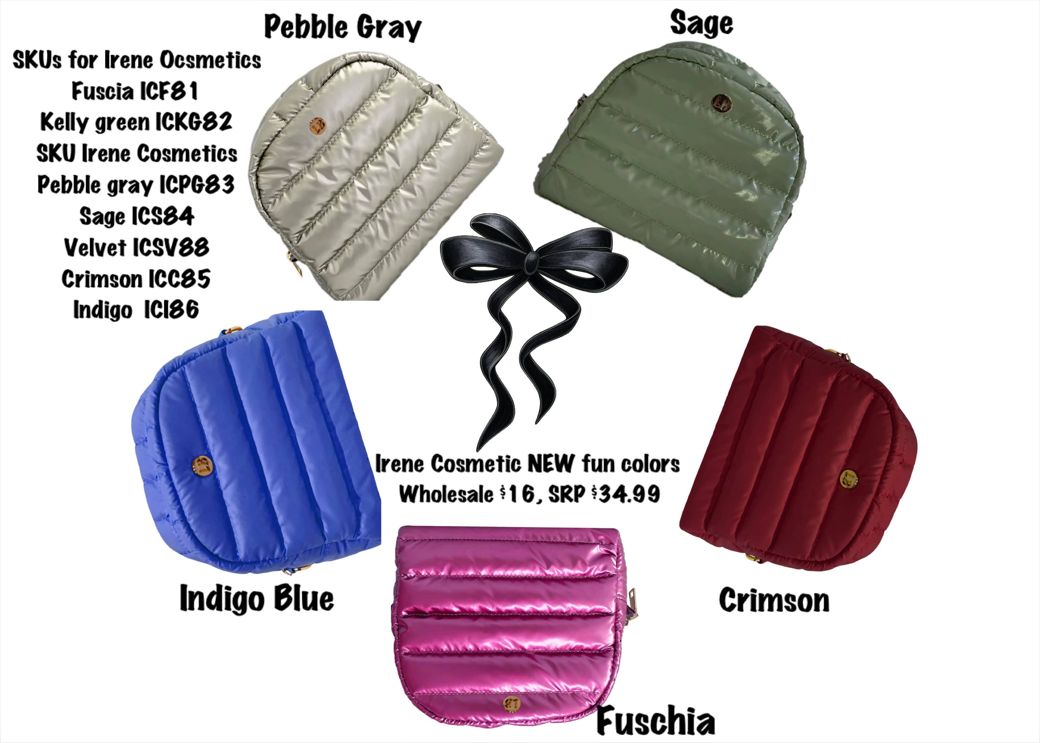 The Irene puffer cosmetic bag has a zipper top closure and inside zipper pocket for all your essentials. As part of our Patricia Puffer Collection, these are designed to coordinate with the Weekender and Tote. Spot clean.