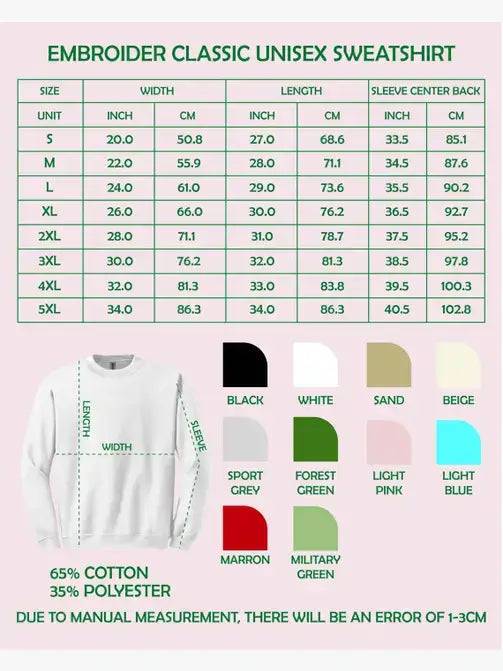 - High-quality fleece fabric (65% cotton, 35% polyester)