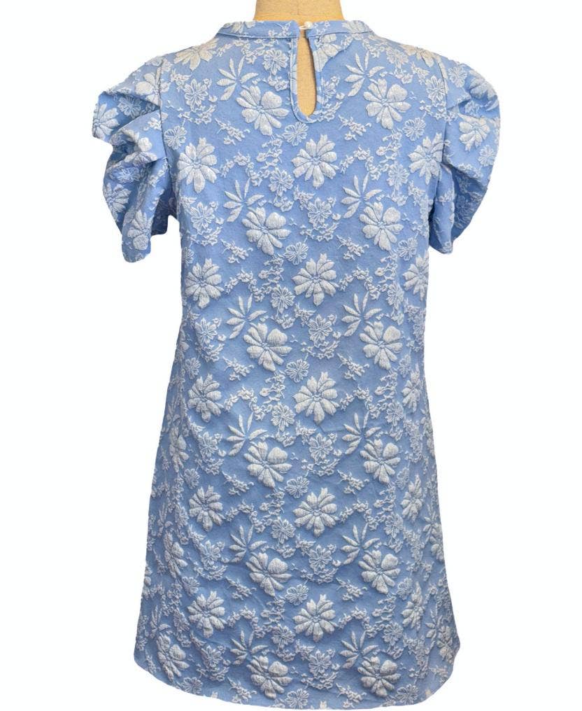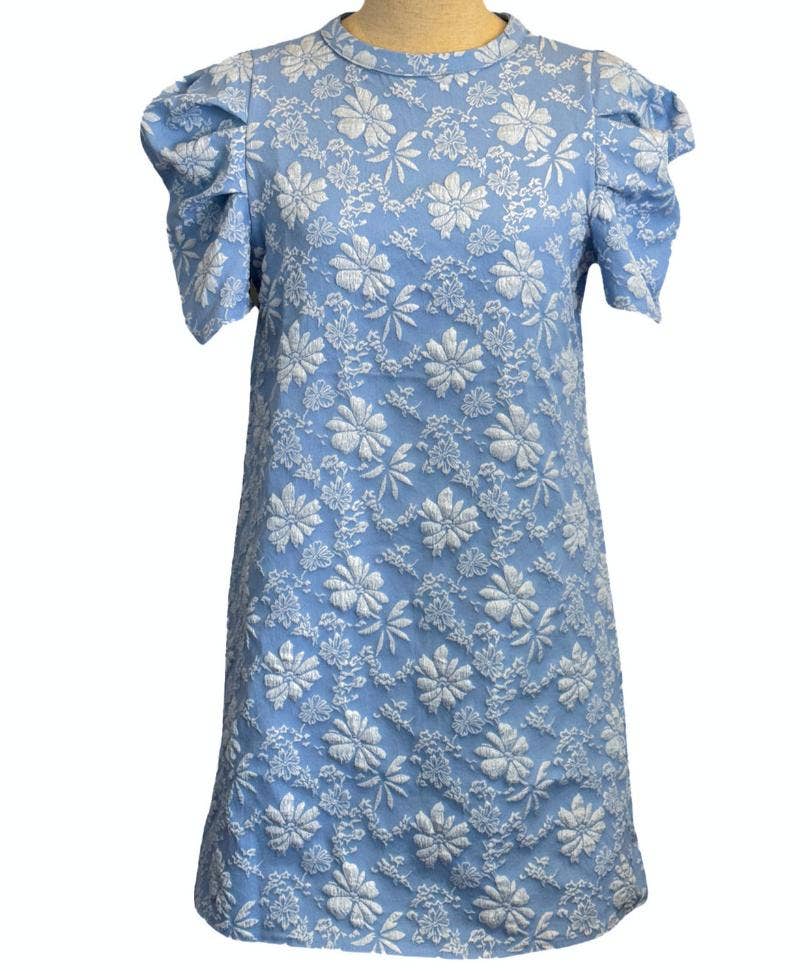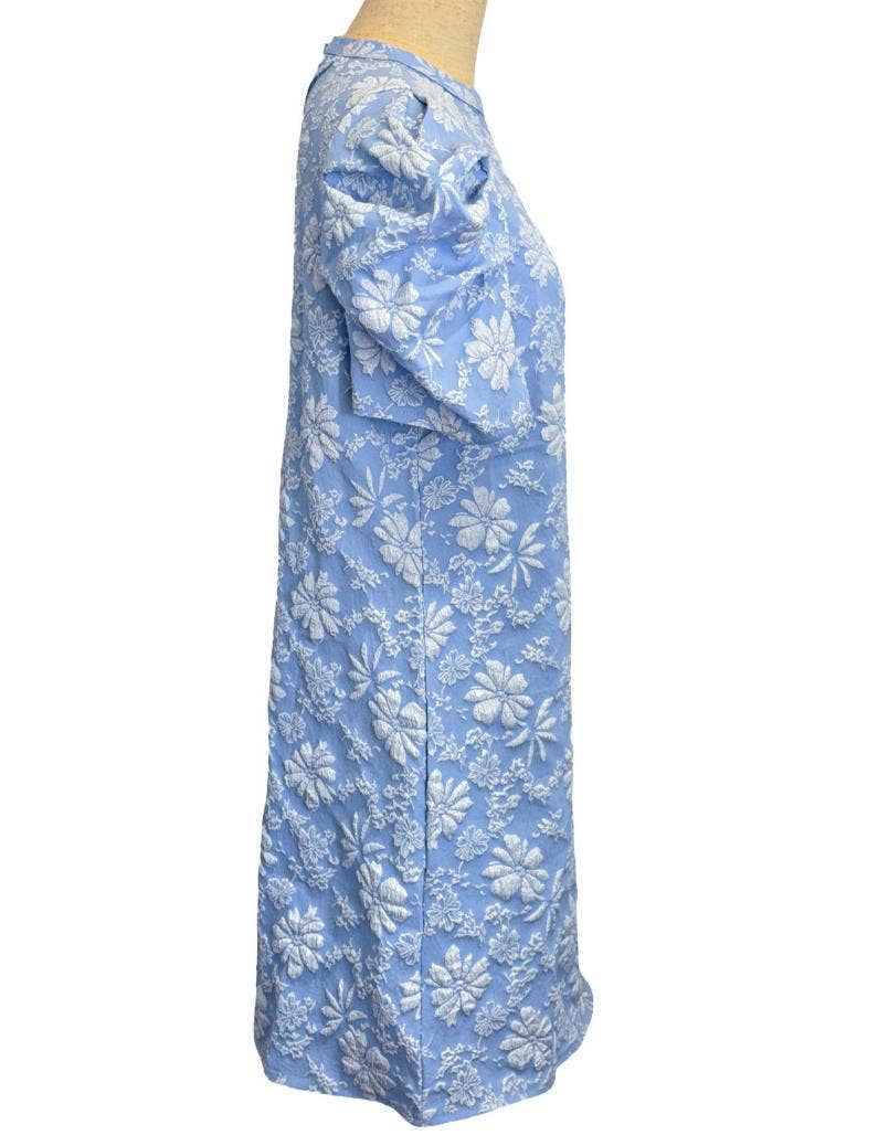 Puff sleeve textured jacquard mini dress_HWJ01937