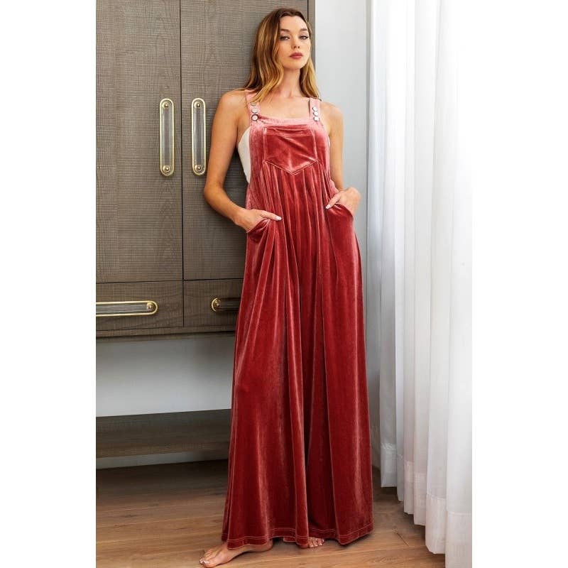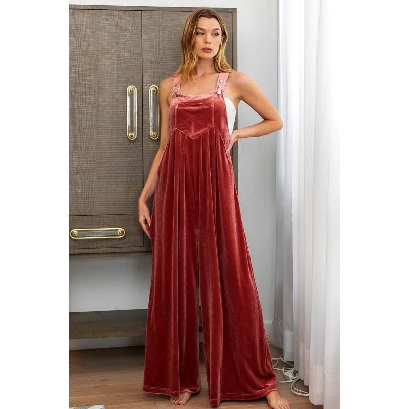 BiBi Style Clothing Features: ๐ŸŒŸ Luxe velvet fabric for a soft, glam look ๐Ÿ‘– Wide leg cut for comfy, flowy movement ๐Ÿงต Adjustable straps for a custom fit ๐Ÿ‘› Handy pockets for function & style โœจ A trendy twist on a cozy classic BiBi, So Me, HYFVE, Final Touch, Very J, Love Tree, Noflik, PETRA 153, Camellia Keywords :Women Clothing, Apparel, Western Apparel, jeans, denim, Jacket, Shacket, sweater, Maxi dress, Young contemporary, Missy, Dress top, Plus sizes womens clothing, Sets, Boho clothing, Linen clothing , Romper, Jumpsuit , Tops, western apparel, linen dress , summer dress, kimono, Floral dress, Gingham , Maxi skirt , summer tops , Mini dress , Dresses for women Spring, swimwear, linen , wedding guest dress, white dress